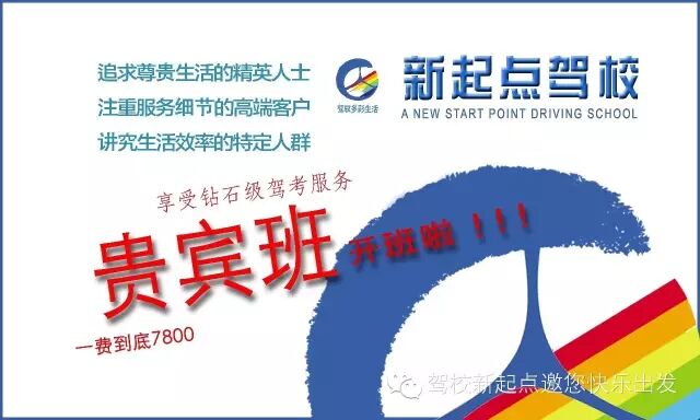 新起点驾校拓展出新的贵宾班项目, 为追求尊贵生活的精英人士,注重服务细节的高端客户, 讲究生活效率的特定人群,制定个性化驾驶培训教案。大家也来好好了解一下吧!