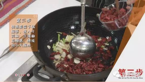 将葱姜蒜下锅煸香,放入干花椒,干辣椒,豆瓣酱,继续用小火煸炒;