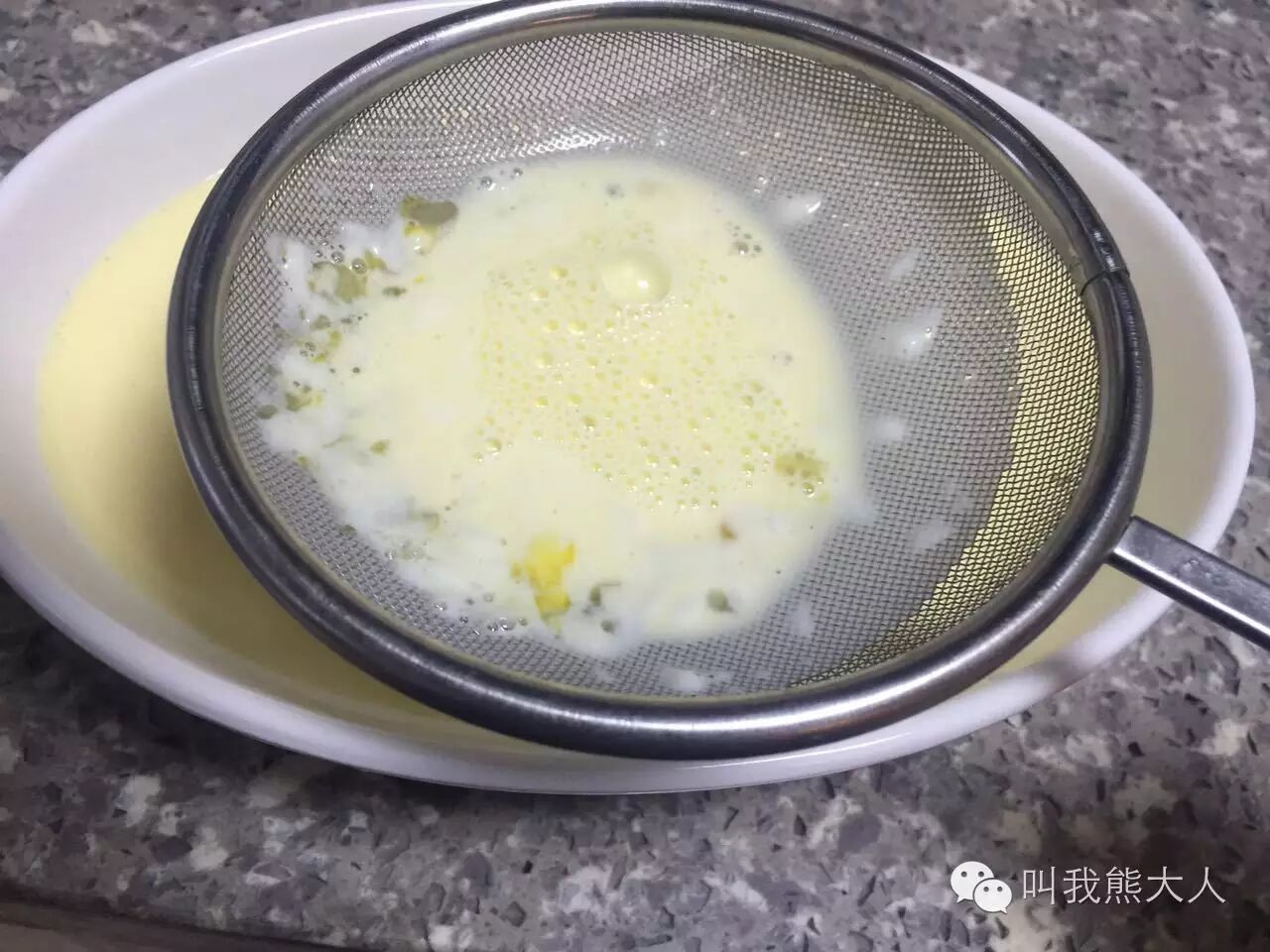 此时需要反复过筛,滤掉杂质和气泡。不要问为什么,照熊大人的方法去做才好吃。
