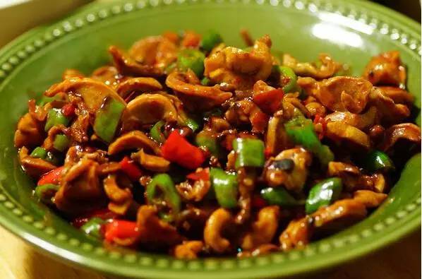 2、最后炒干辣椒段和花椒时,锅里底油只用放一点,也是小火慢炸,如果口味重的可再加些花椒粉和辣椒粉,这样可以更辣更麻。