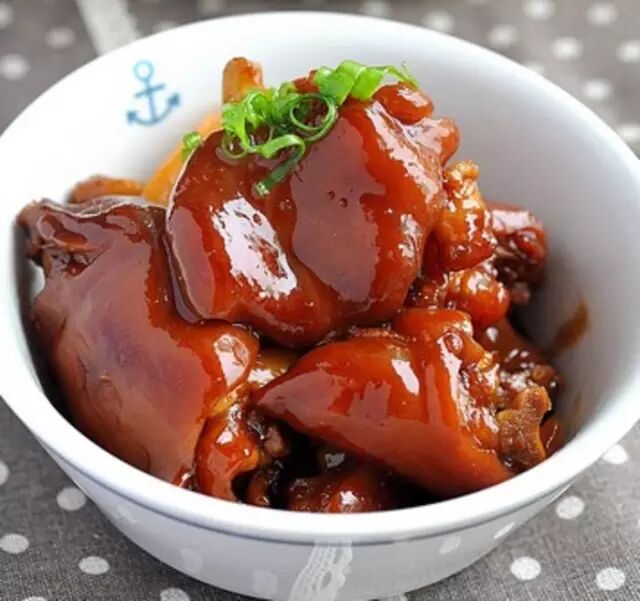食材:(一汤匙=15ml):猪蹄500g、葱、姜、八角一颗、花椒十粒、生抽两汤匙、老抽半汤匙、料酒一汤匙、冰糖一汤匙、香油半汤匙。
