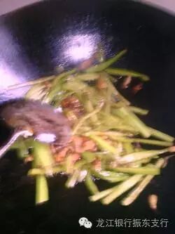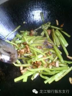 6.放入我的肉与青椒丝一起炒。快出锅时放入盐,鸡精,孜然翻炒均匀后盛出。