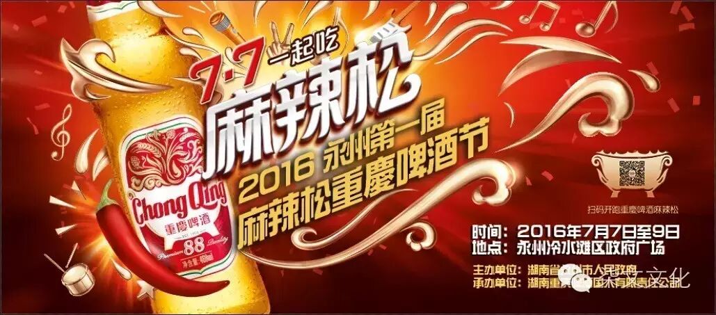 2016年7月7日~9日,每晚19:00-22:00,永州市冷水滩区政府广场,重慶啤酒带你连嗨三天,现场不见不散!!!8月6日~8日,我们将在澧县街心花园广场为你打造“8月8,一起趴”—澧县第一届麻辣松重慶啤酒节!更多精彩内容,我们将陆续公布!