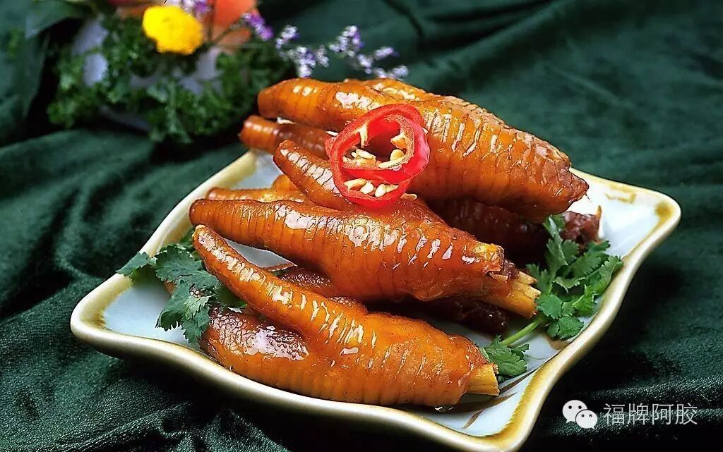 鸡爪7—8个,福牌阿胶10g,老抽一汤匙。