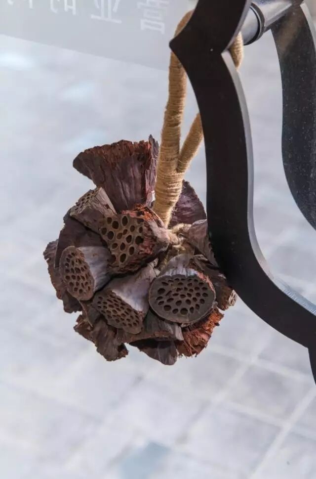 ▲门把手上装饰着干莲蓬