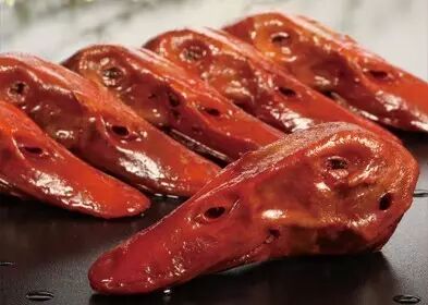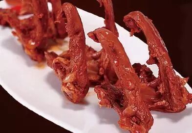 一手店鸭产品 经过多道工序精致而成,成品色泽深红,具有香、辣、甘、麻、咸、酥、绵等特点,是一道佐酒佳肴。
