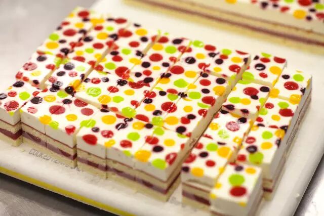 A:通常用新鲜水果搭配海绵蛋糕是比较受欢迎的,但是寿命最多只有两天。我比较倾向于不切水果,例如草莓剥了叶子后直接放上整颗草莓。因为切开后切面会接触空气,氧化产生水,寿命会缩短。