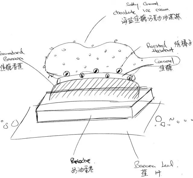 今年六月份,哈根达斯携手法国国宝级甜品大师Jean Francios Arnaud和马来西亚榴莲王子Danny Ho,于香港举办一场法式冰淇淋甜品秀。Danny在分享会上分享了他的甜品设计搭配手稿图、以及在搭配、制作时的想法。