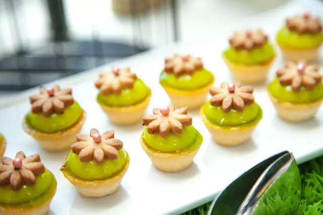 夏季法式甜品的搭配颜色的选择上要色彩缤纷一些的,通常会选择绿色,或者五颜六色的花花。