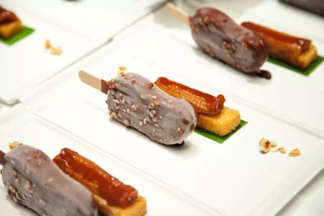 这款甜品用了哈根达斯的海盐焦糖巧克力雪糕,因为它带着比较重的海盐,所以用焦糖的甜味来中和,再搭配焦糖香蕉。