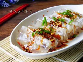 麻辣水晶皮冻是一道色香味俱全的汉族名肴,属于湘菜系。此菜是以猪肉皮为原料制作的大众凉菜。都说猪皮是最最廉价又超级补胶原蛋白的食品。是美容佳品。女性朋友要多吃。小时候就很喜欢吃皮冻了,吃起来特别Q特别好吃