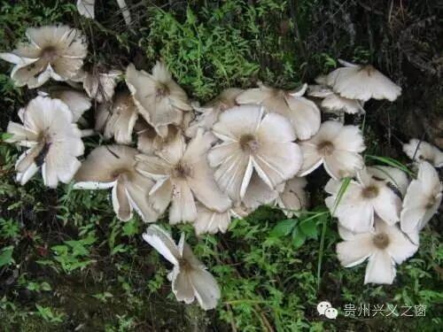 兴义人把鸡枞也叫作“三把菇”、“三堂菇”,“伞把菇”。鸡枞一般三丛连生,本地人一般把一丛称为一堂,故称“三堂菇”,三堂鸡枞每堂数量不等,有的一堂只有几朵,捆起来成为一把,三堂可得三把,也许这又是称作“三把菇”的原因。当然也有一堂几十上百朵的,有可能一下子就能捡两大背篼。