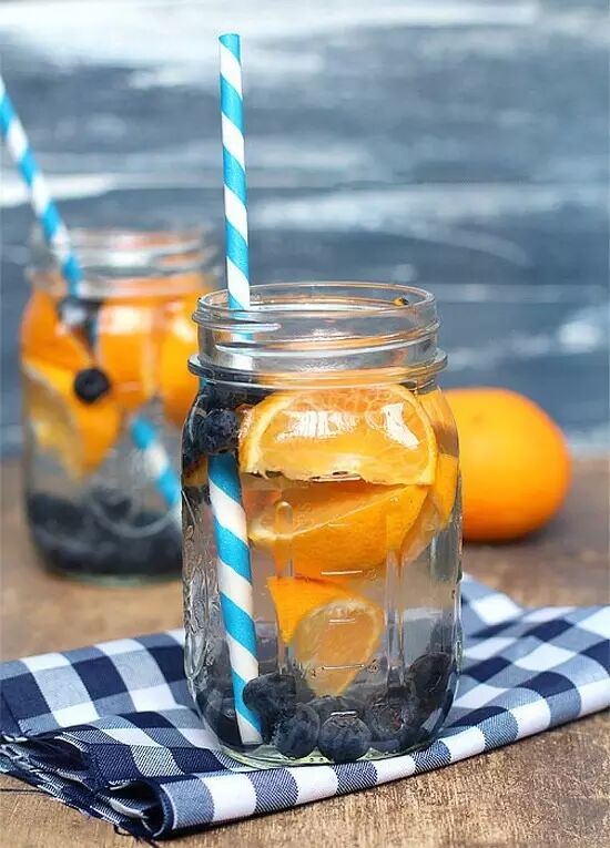 🌟 橙子片+黄瓜片+薄荷叶+冰水