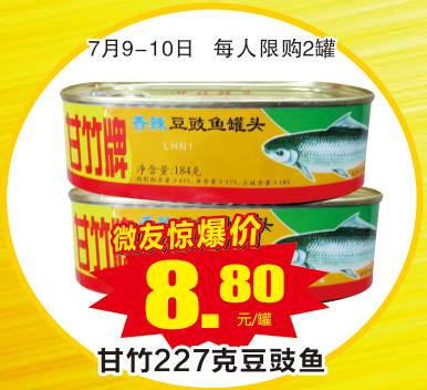 7月09日—10日 甘竹227克豆豉鱼 8.8元/罐(每人限购2罐)