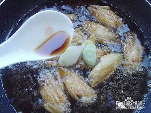 ▶鸡翅洗净,入葱姜水中煮沸捞出,沥干水份。