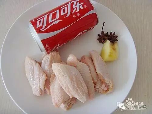 ▶材料:鸡翅中、可乐一听、八角、姜、葱段、料酒。