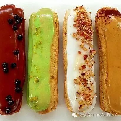 Éclair Bakery的经典泡芙条口味超级丰富,有焦糖碧根果、芝士莓果、栗子朗姆酒、特浓巧克力等等,当然也少不了杏仁牛角面包、马卡龙等经典甜点!