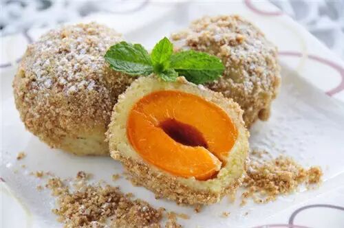顾名思义用杏肉和面粉做的团子,制作时将杏胡去掉换成一块方糖,之后包上发酵面,在水中煮10分钟左右。食用时,团子上会撒些糖粉,香料粉或面包粉用来调味。