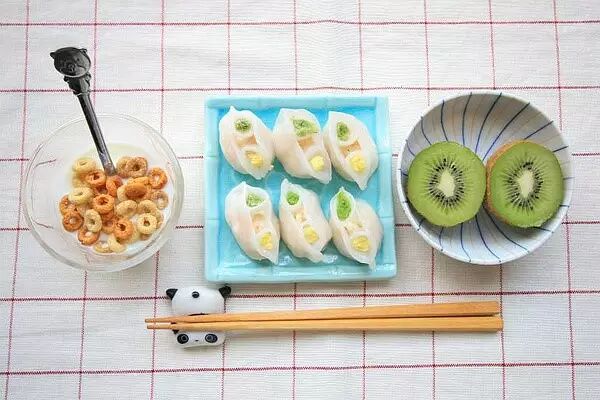 酸奶麦片圈+虾仁烧卖+猕猴桃