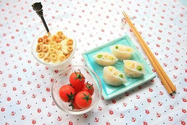 虾仁烧卖+香蕉麦圈酸奶+番茄