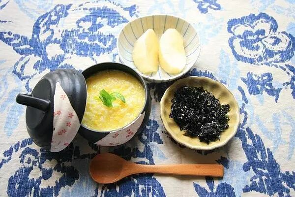 一碗鸡蛋粥+一些海苔+苹果