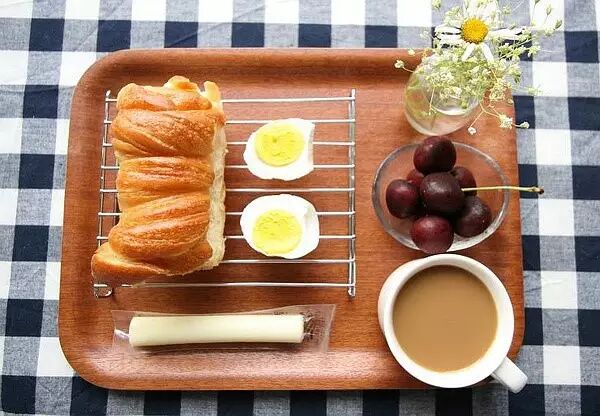 面包+鸡蛋+起司+车厘子+牛奶