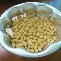 称100g的黄豆洗干净,清水泡一晚上,完全涨发,泡完过滤水份。