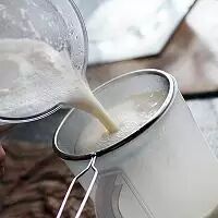 做好的豆浆,用过滤网过滤两次,用纱布或者布袋过滤效果会更好。