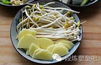 5)豆芽清洗干净后择去底部,土豆洗净去皮后切片,金针菇洗净去根部