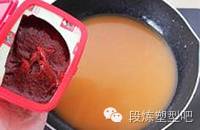 9)加入2小勺辣椒酱,用筷子搅拌至酱料完全溶解,开火