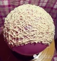 ⑦ 待巧克力冷却致30度左右时,将其装入裱花袋,把巧克力随意的挤在气球表面,做成巧克力珍珠球