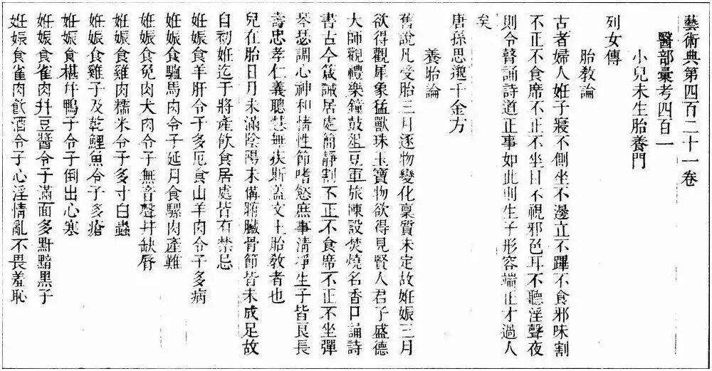 从两汉到唐宋,孕妇饮食禁忌越来越多,违禁后果越来越细,外象内感的应用也越来越明显。孙思邈把这些禁忌收集到了一个列表里,涉及19种食物,对应13种后果。其中,吃山羊肉不再导致孩子变成哑巴,而是令他多病;吃羊肝则令子多厄运;吃鸡肉的后果变成了长绦虫;吃甲鱼导致孩子的脖子缩短;兔肉仍然有变哑的效力,还附送了长兔唇的功能。