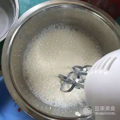 9、再加入蛋清,想口感细腻一点的话可以用打蛋器稍微打一下。