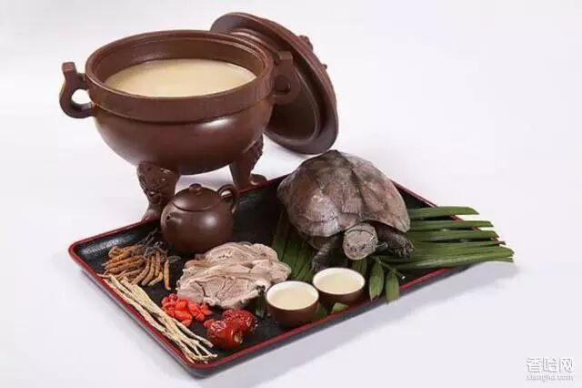 万寿羹又名龟鹤延年汤,是一道湖北荆门的汉族特色名吃。以龟肉和鸡肉合烹的汤菜,营养价值极高。菜名吉祥,喜庆寿筵均宜。选用荆门出产的断板龟与母鸡经过加工处理,剁成3厘米见方块,用猪油爆炒后,倒入沙锅或瓦罐,在旺火上煨至汤汁乳白,肉质八成熟时,端锅离火,待凉后置于中火上煨至酥烂,调好味品即成。此菜特点为汤面黄亮,汤汁乳白,汤味甘鲜,食后口留余香。