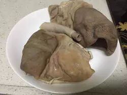 6.时间到,用筷子试插一下猪肚是否完全熟透,以筷子轻轻一戳就穿为宜,然后把猪肚捞出来,散热。