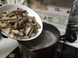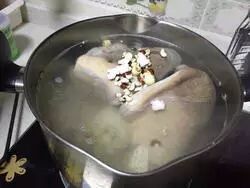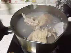 3、在煲的过程中要用筷子翻一下,调换猪肚在汤中浸泡的上下位置。