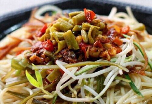 2.这道料理也可以用别的面条。比如,超市会比较易找到真空包装的荞面冷面,在干品挂面货架也经常会有莜麦面,这些冷面属于熟化制成的,就是朝鲜冷面的那种。当然即使普通的挂面或鲜面条也一样可以制作这道可口拌面。只是要注意火候煮得轻一点即可。