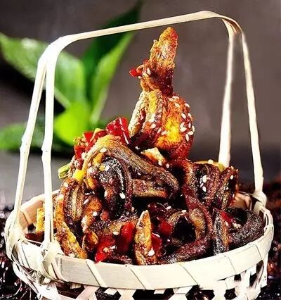 2、锅入红油,下干辣椒节、花椒、香油、鸡精、味精和芝麻炒香后,再把炸好的秋刀鱼放进去一起炒匀,出锅装盘便好。