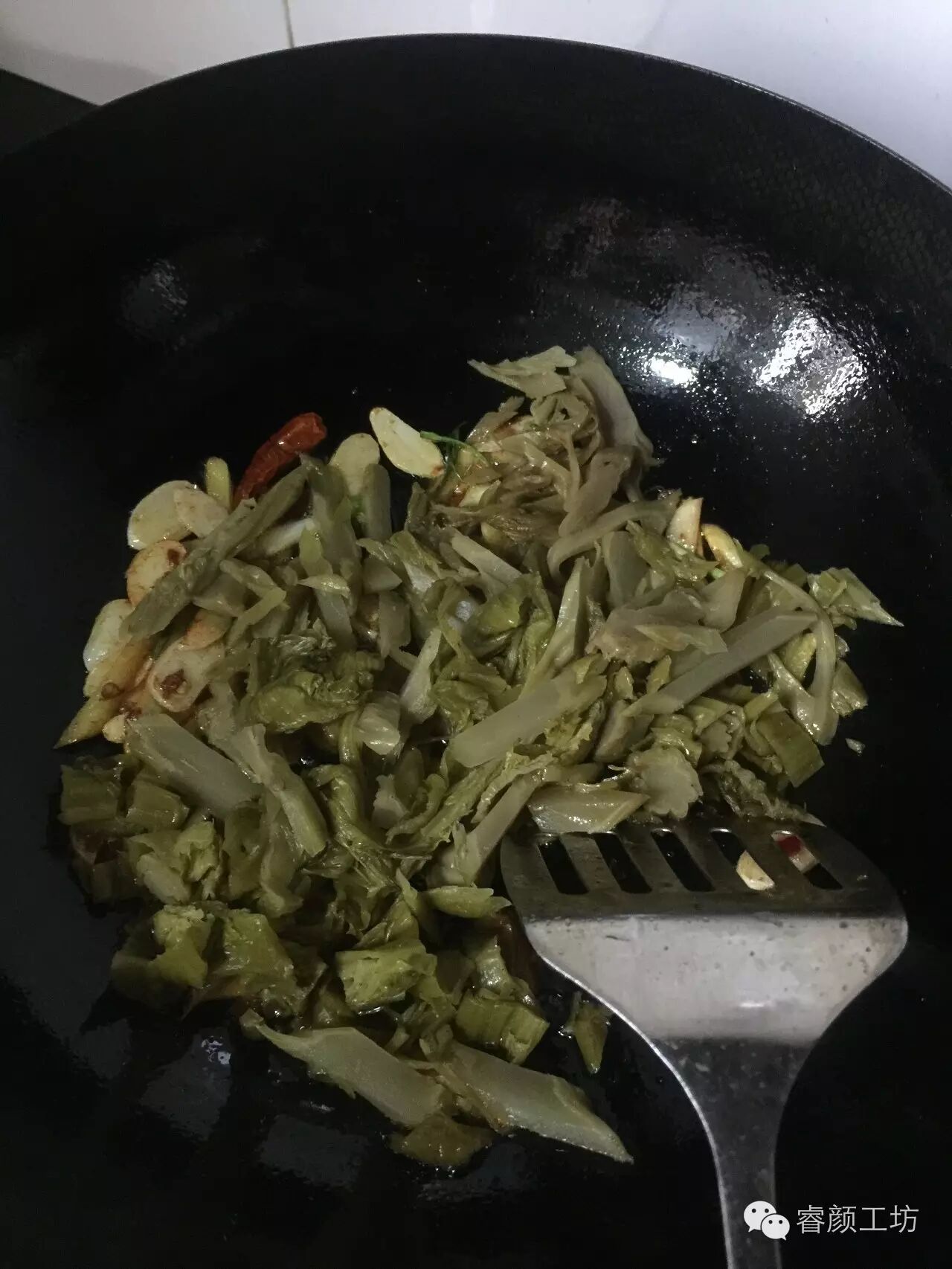 4. 加入酸菜翻炒;