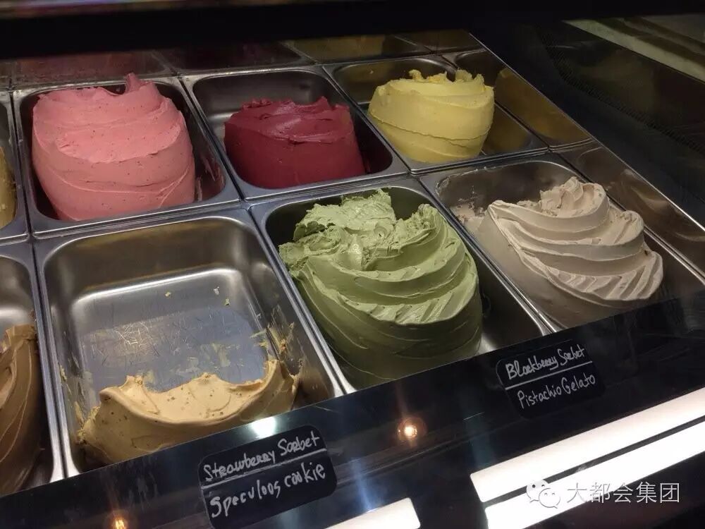每天都会有 16 种不同口味的雪糕与大家见面,通常 10 款为浓郁香滑的 Gelato 和6款冰霜不腻的 Sorbet。另外,每一个星期平均会有 2 款新的口味面世,像开心果、巧克力,酸奶等经典口味以及像藏红花,椰子柠檬草这种新奇口味的意大利冰糕也出现在华丽的口味阵营中。