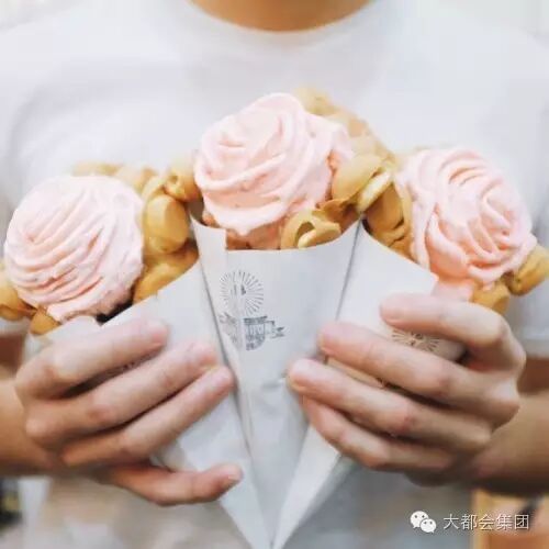热遍全球的鸡蛋仔卷冰淇淋 Cauldron Ice Cream 你又怎能错过呢?以香港传统美食鸡蛋仔(此处取名 Egg Puffle)作为冰淇淋筒,然后在上方放上玫瑰花造型的各种口味冰淇淋,从买相来说已经 100 分!