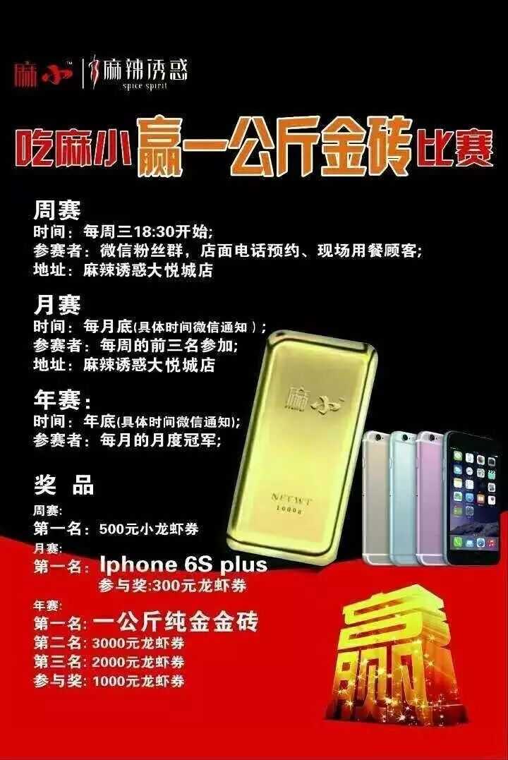 最近麻辣诱惑那可是锣鼓喧天,鞭炮齐鸣,红旗招展,人山人海呀,一众龙虾达人们要在90秒干掉一公斤龙虾!7月每周三都有哦,欢迎大家报名,奖品丰厚,更有金砖等你来!