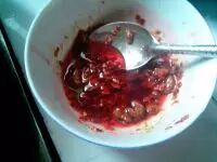 7.将豆瓣酱与小米椒混合,舀油入辣椒碗内将辣椒炼熟。