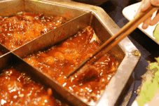 如果锅底的海椒看起来显得透红鲜亮,特别好看,那么这个麻辣锅底肯定也暗藏问题。正常情况下熬制的麻辣锅底,应该略有浑浊的,透亮的麻辣锅很明显是加了辣椒精或者火锅红撒。