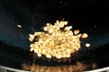 11、热锅凉油,放猪肉煸炒至金黄色。