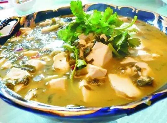 烂生菜滚豆腐是是金华一道独具特色的菜肴。虽然它听起来名字寒酸,闻起来还有点臭,但不得不说这烂生菜滚豆腐吃起来口感非常鲜美,越品越香,是每个金华人心中家乡的味道!