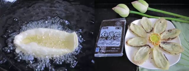 炸荷花需要在白荷花微开时,取其中层最嫩的花瓣为原料。将荷花瓣在鸡蛋、白糖,面粉糊中一拖,入油炸黄即可。