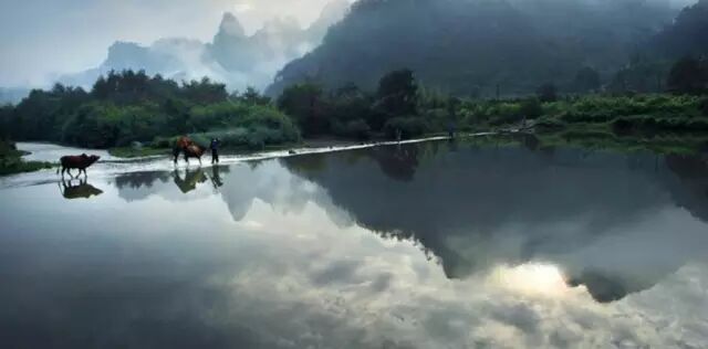丈幽谷碧池处处,绿林满目,有一池碧水一丛绿林相映成趣地成为我们相机里的永恒画面。那碧水绿树静止在一豁然开朗处,浓郁得像经过了上亿年的提炼。倦怠在这儿消失了痛苦,失意在这儿丢弃了抱怨,浮躁和浓绿调和出片温馨的安详。在这儿,小孩们喜欢拿着水枪打水仗、在浅水处踩水......