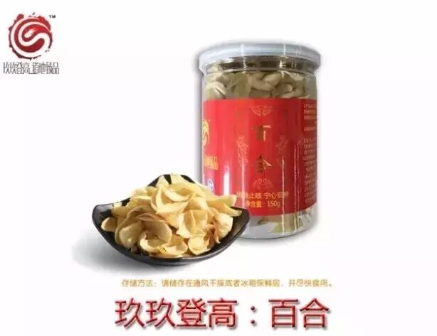 玖玖登高的百合精选优质原料,选择洁白、片大、紧包的百合鳞茎,剔除虫霉、黄斑、霉烂及表皮变红的百合,热风干燥后人工选择色泽洁白完整,大而厚的一级品密封入罐。