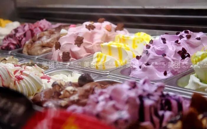 店家准备的冰淇淋口味齐全,可以加的料也很丰富。可以单点冰淇淋球,也可点店家已经搭配好的组合装,此外,店家还有咖啡等饮品出售。
